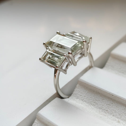 3 Baguette Citrine Gemstone Ring