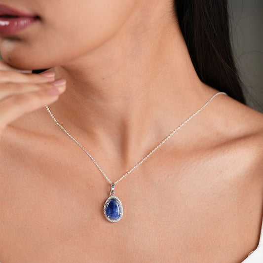 Natural Lapis Pendant With Chain