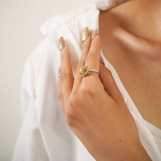 Pear of Joy Green Amethyst Ring