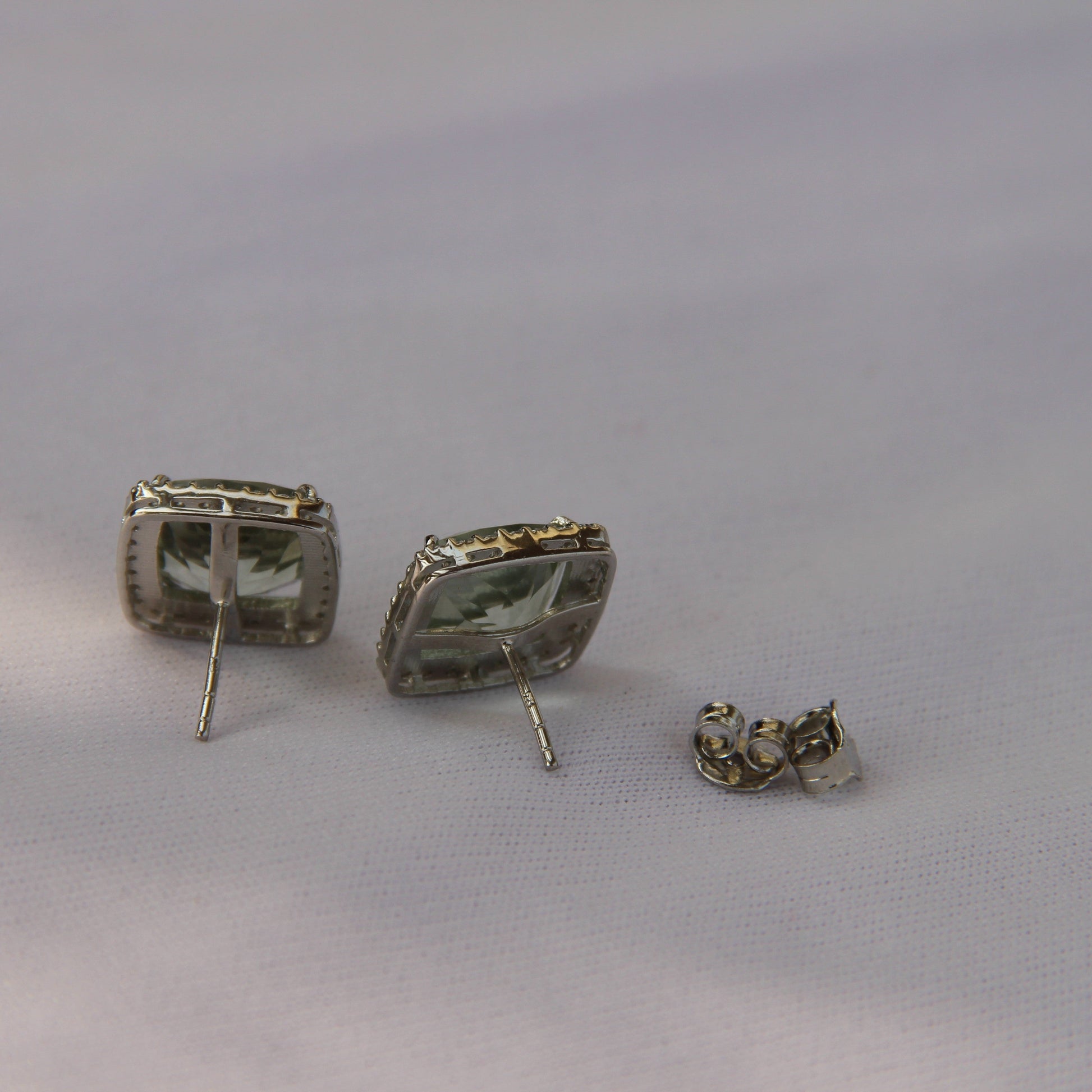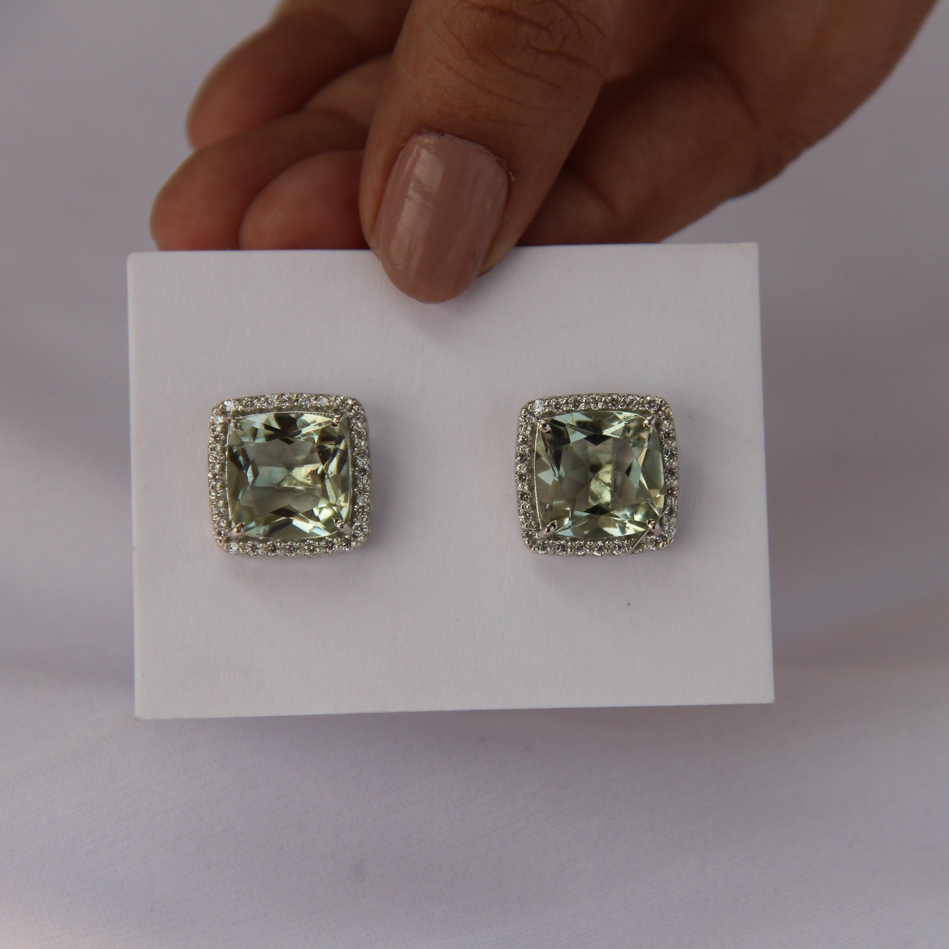 These fierce glow studs feature cushion-cut green amethyst stones embraced by a halo of sparkling cubic zirconia, set in sleek 925 silver. These earrings offer a bold yet elegant statement, perfect for adding a touch of drama and sophistication to any look.💚