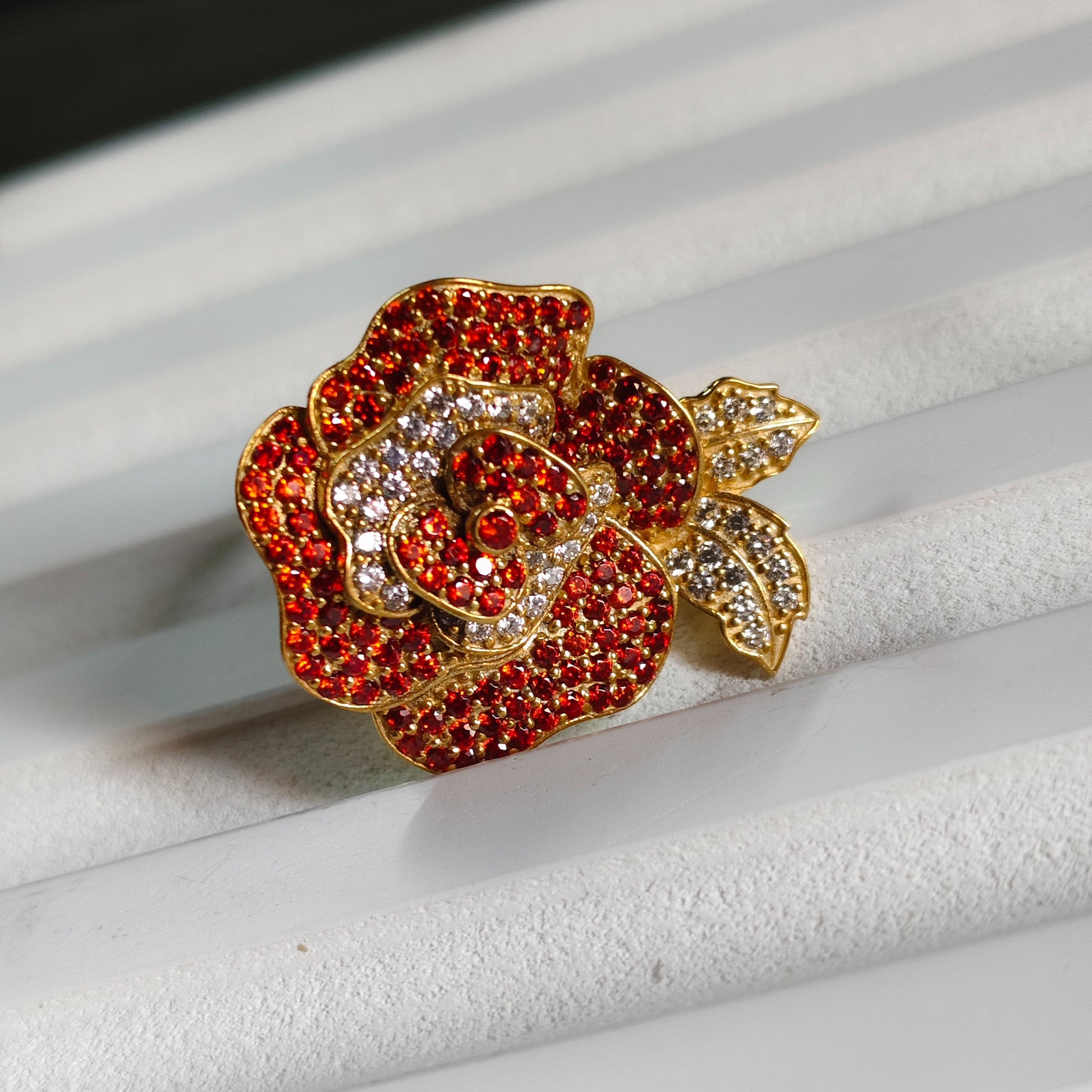 This statement ring features a stunning floral design crafted with natural garnet stones, beautifully accented by sparkling cubic zirconia at the center. The deep red garnets add richness and warmth, while the CZ detailing enhances its brilliance. Set in hallmarked 925 silver with a gold-plated, anti-tarnish finish, this ring is designed to be strong, secure, and long-lasting—perfect for special occasions or elegant everyday wear.