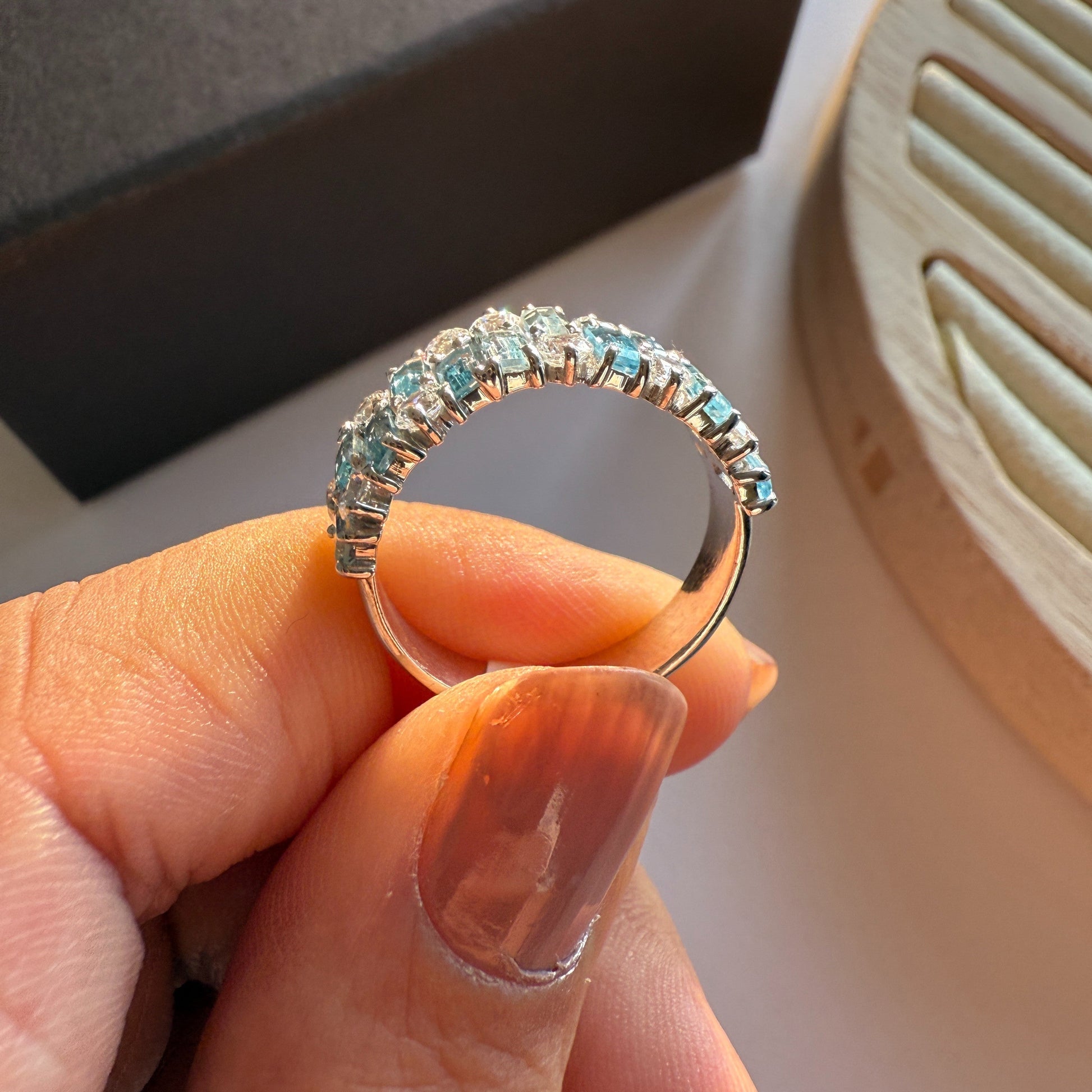 A timeless ring crafted with sky blue topaz stones, radiating a soft, elegant glow.