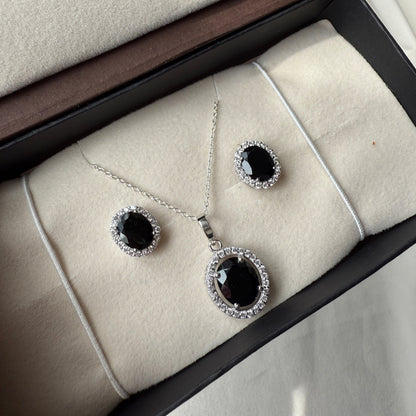 Oval Statement Natural Black onyx Pendant and Earring Set