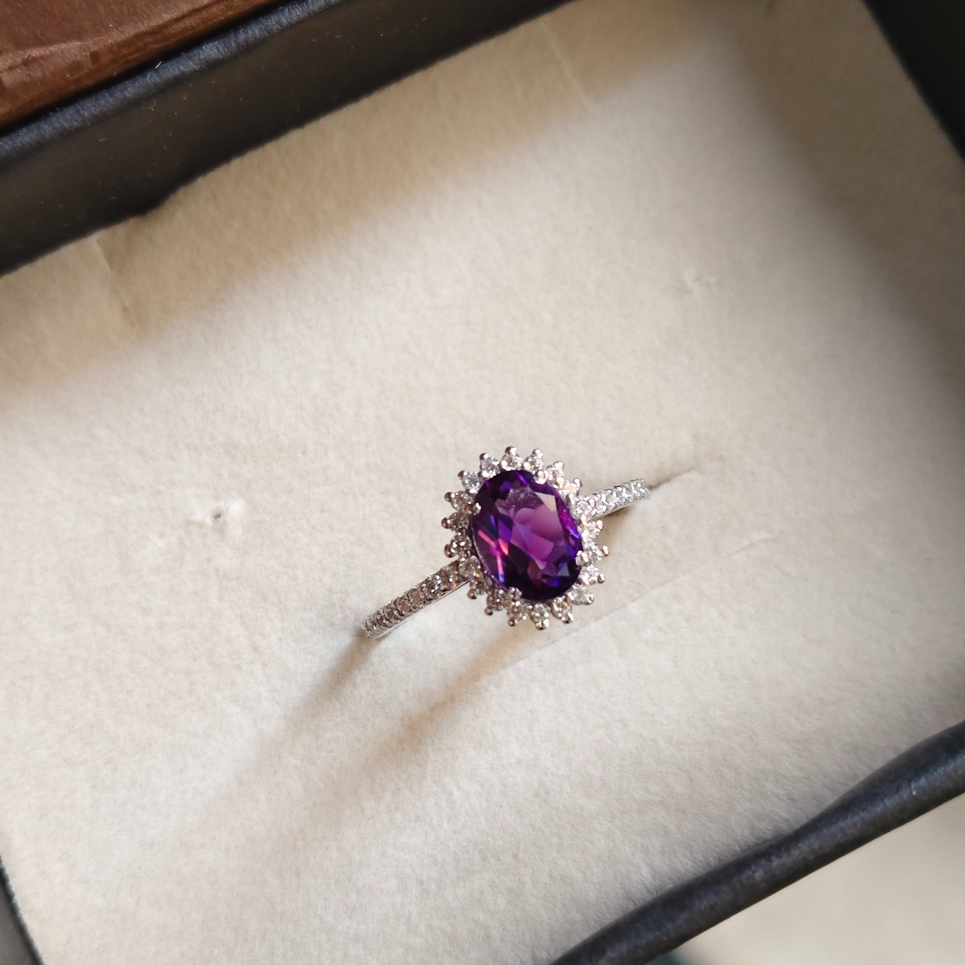 One of our bestsellers, The Petite ring, set in sterling 925 silver, features a delicate halo design that enhances its central Amethyst gemstone. Its petite form and refined detailing make it an elegant statement piece, perfect for adding a touch of subtle luxury to any ensemble.💛
