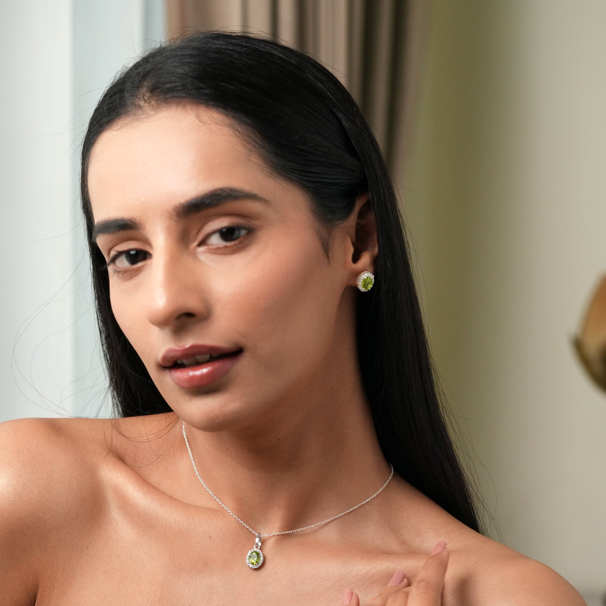 Delicate in design, yet rich in depth—this petite set features fiery red Peridot stones. A symbol of passion, strength, and timeless love. Perfectly sized for everyday elegance with a bold touch of color. A graceful piece to cherish or gift from the heart.