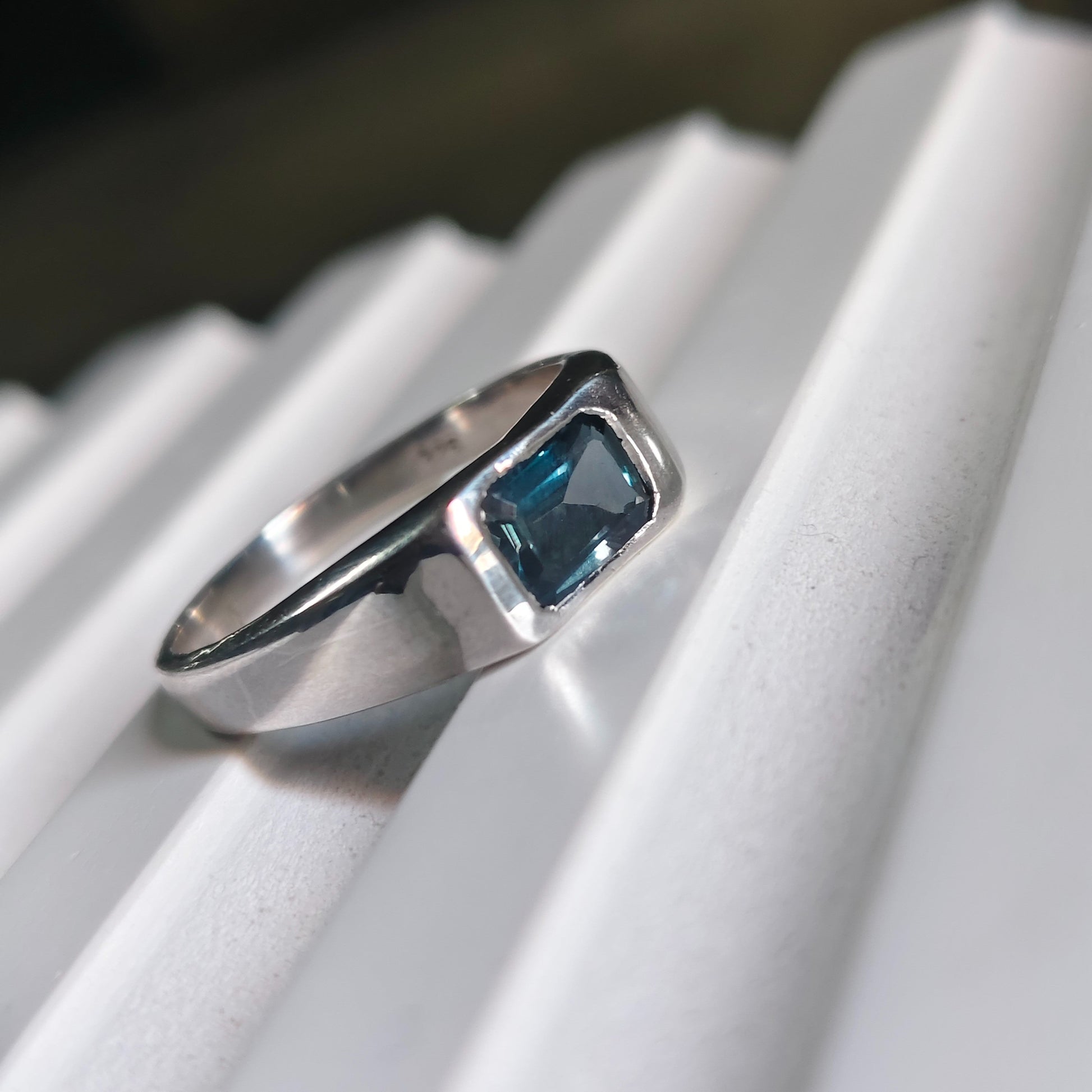 Crafted in hallmarked 925 silver, this ring is designed for the modern man who appreciates bold yet refined style. The clean lines and structured silhouette give it a powerful presence, while the center stone adds a touch of depth and character.