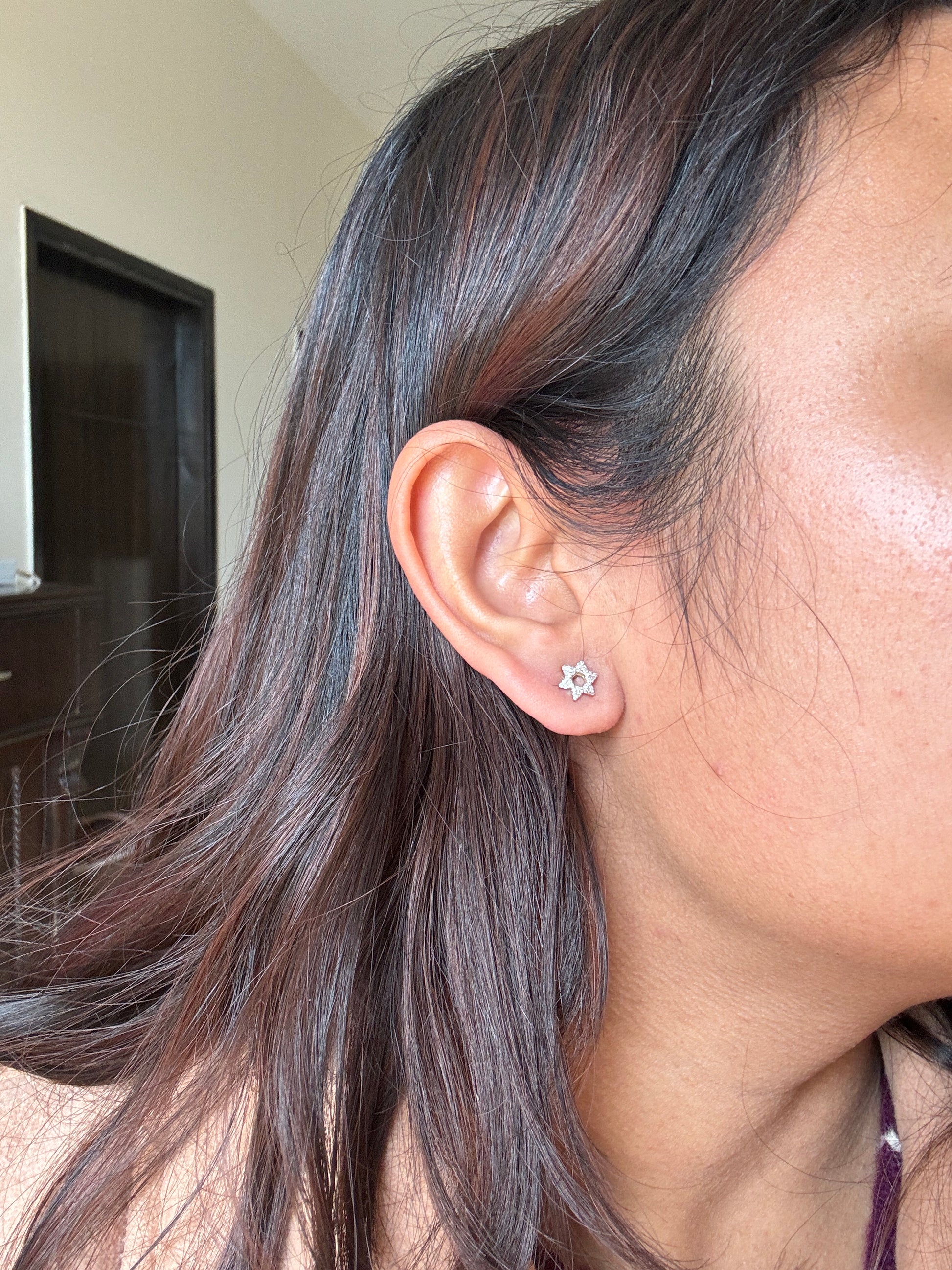 These studs can be made in White gold/ Rose gold, You can select the metal color or reach out Via WhatsApp for the same- +91-9660022399